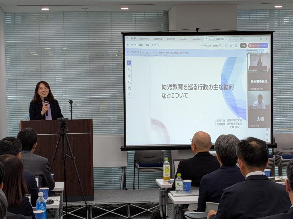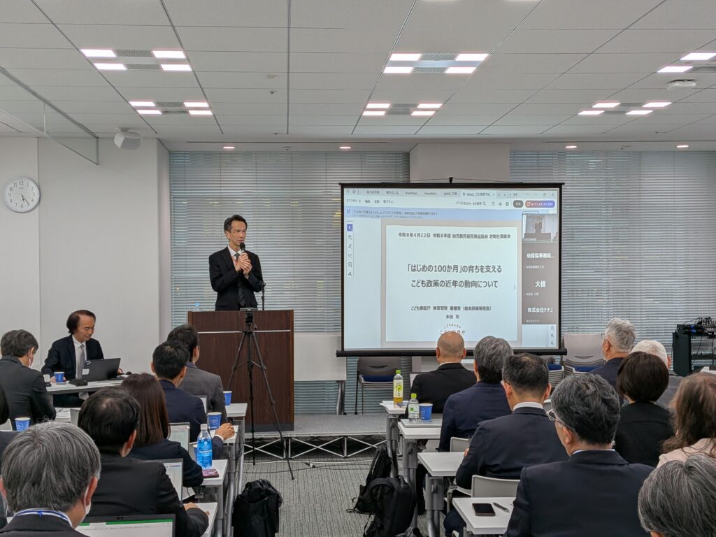 また、会員向け研修として、元内閣府特命担当大臣 参議院議員 自見はなこ様、文部科学省 初等中等教育局 幼児教育課 幼児教育企画官 大類由紀子様、こども家庭庁 長官官房審議官 水田 功様による講演会を開催いたしました。