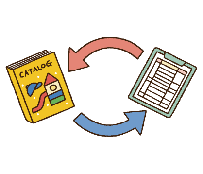 使用場面・場所から必要な備品を探すことができます。リストの分類が、保育各社の総合カタログの分類と一致しているため、比較検討もしやすく業務効率の改善に繋がります。